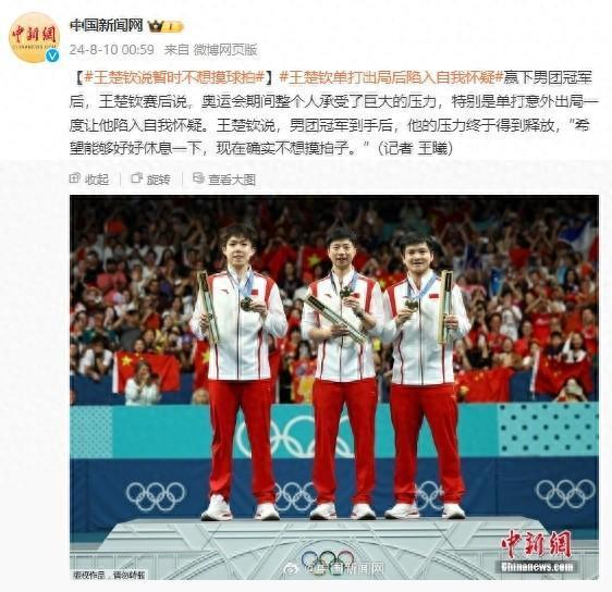 赢下男团冠军后,王楚钦赛后说,奥运会时辰通盘这个词东谈主承受了普遍的压力,至极是单打随机出局一度让他堕入自我怀疑。王楚钦说,男团冠军得手后,他的压力终于赢得开释,“但愿粗略好好休息一下,当今照实不思摸球拍。”(记者 王曦)